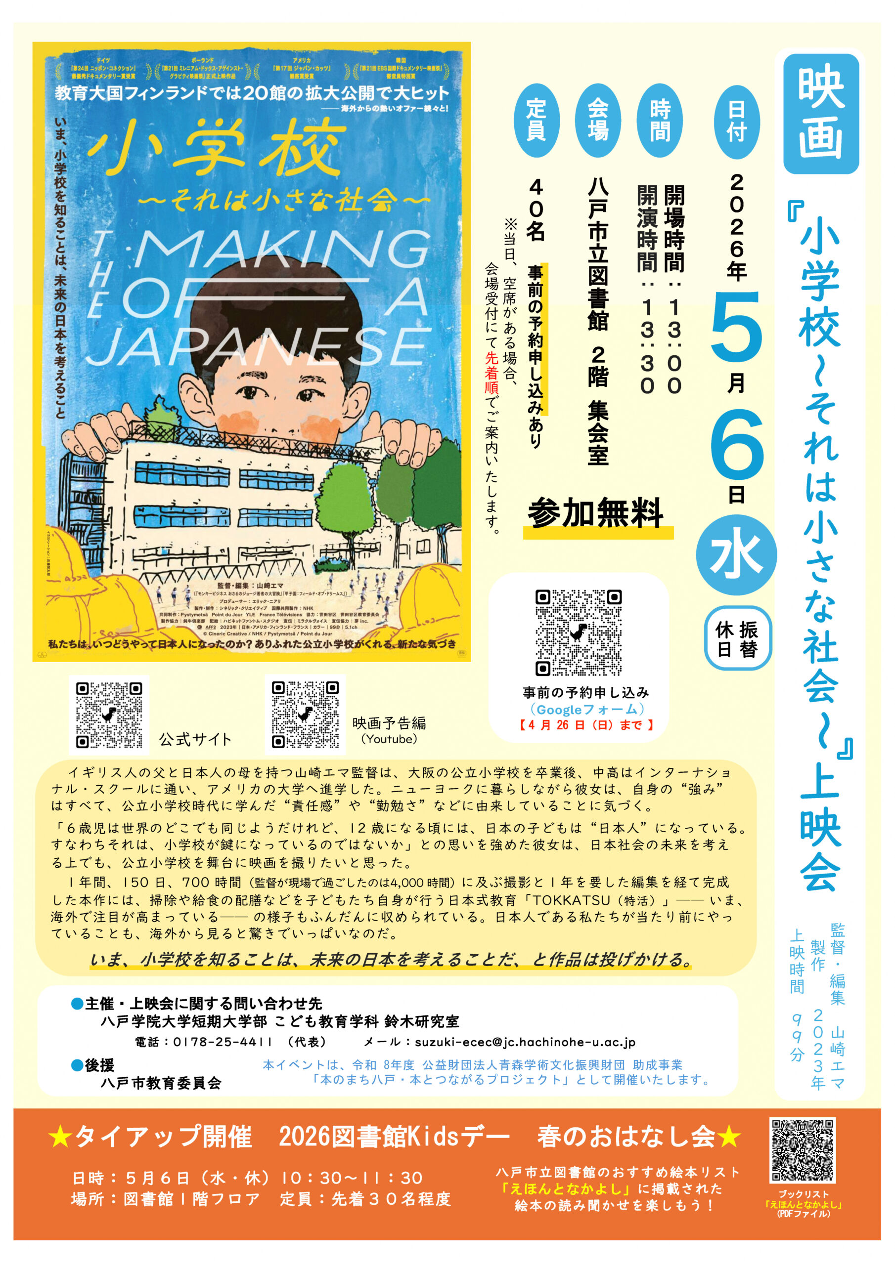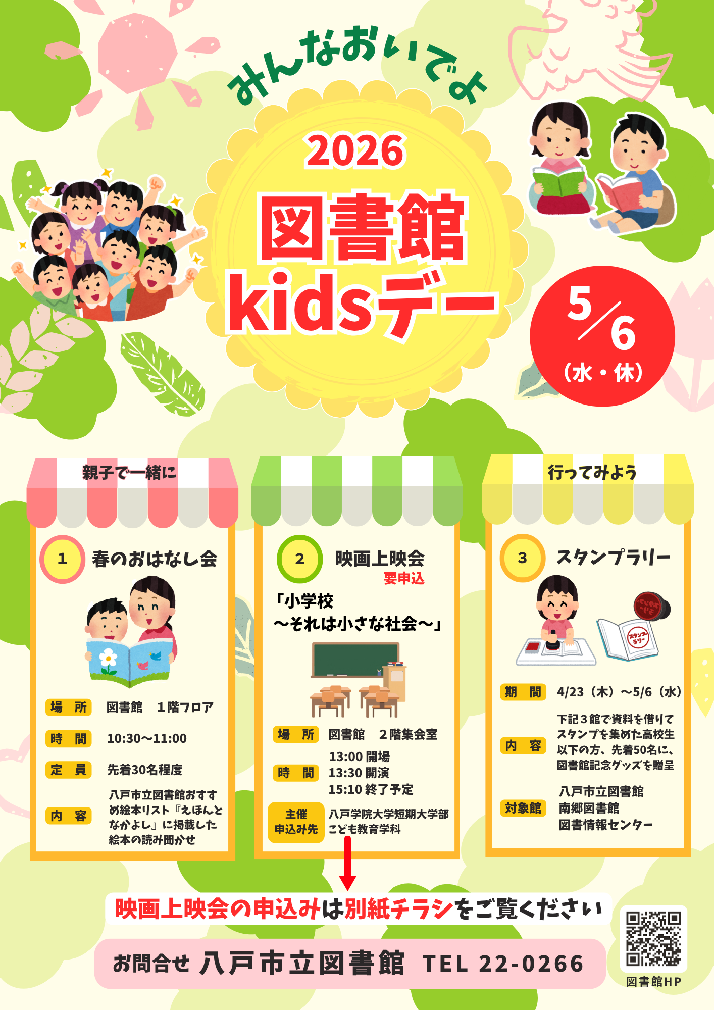 八戸市立図書館(本館)で、「こどもの読書週間」(4/23~5/12)にあわせて「図書館kidsデー」を開催します!