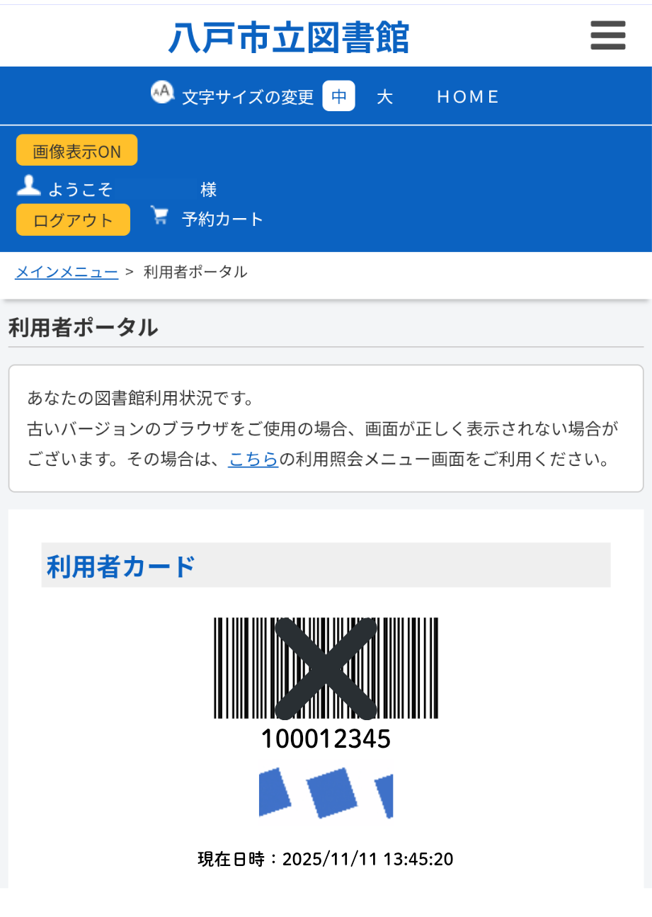- 利用者カードのバーコードを撮影した画像